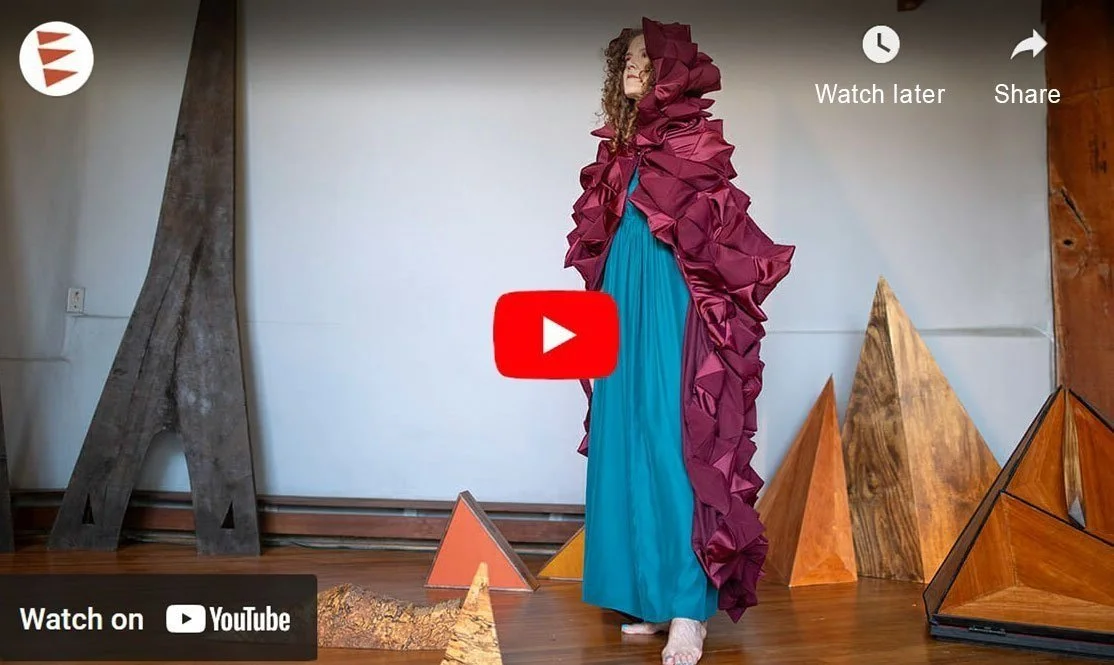 The Wood is Singing in Color was a site-specific performance that explored Wharton Esherick’s creative influences in the 1920s and 30s, including Rudolf Steiner’s anthroposophical design theories which sought to express unseen spiritual energies through form and color and often featured crystalline shapes. The environment and costumes for the performance, made in collaboration with woodworker Casey Chew and fashion designer Dana Meyer, were inspired by Esherick’s prismatic furniture and stage sets.